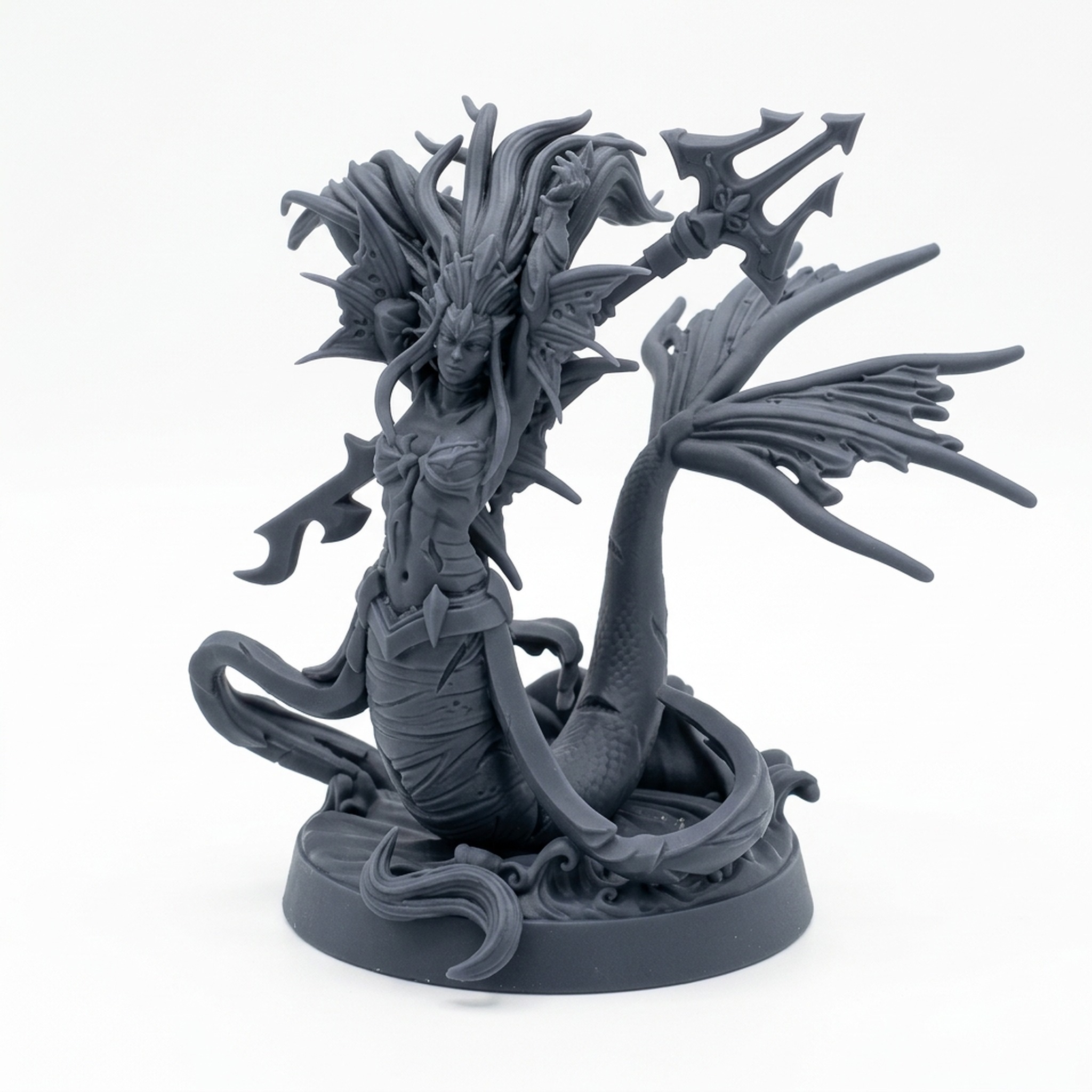 Introduce an element of aquatic dread to your next game session with Merkyes Trident Batallion C. This dynamic 3D printed miniature from CastnPlay's terrifying Merghouls collection is expertly crafted with intricate details, showcasing a fierce Merfolk warrior posed for battle. With its sharp trident and distinctive tail fin, this model is a standout addition to any collection of fantasy miniatures, perfectly capturing the theme of dark, deep-sea raiders. Its high-quality resin construction ensures that every menacing detail, from the textured scales to the flowing hair, is rendered with precision, offering a rewarding painting experience and making a powerful statement on your gaming table.