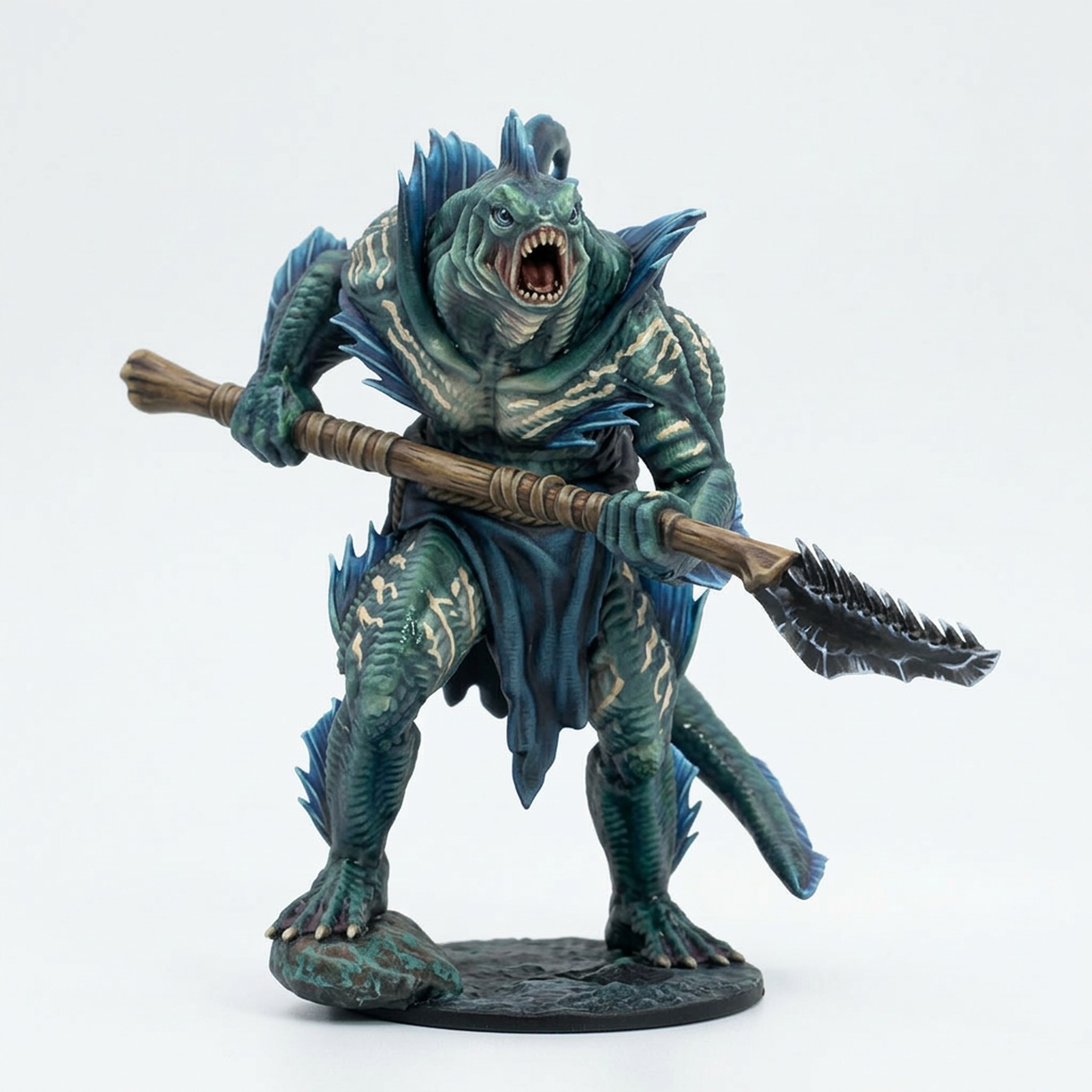 Whether you’re running a challenging Dungeons and Dragons scenario or building a formidable aquatic army for Warhammer Fantasy or Age of Sigmar, this highly detailed model makes an excellent addition to your collection. The intricate scale patterns, muscular definition, and expressive facial features provide a fantastic canvas for miniature painters looking to showcase realistic aquatic skin tones and armor details.