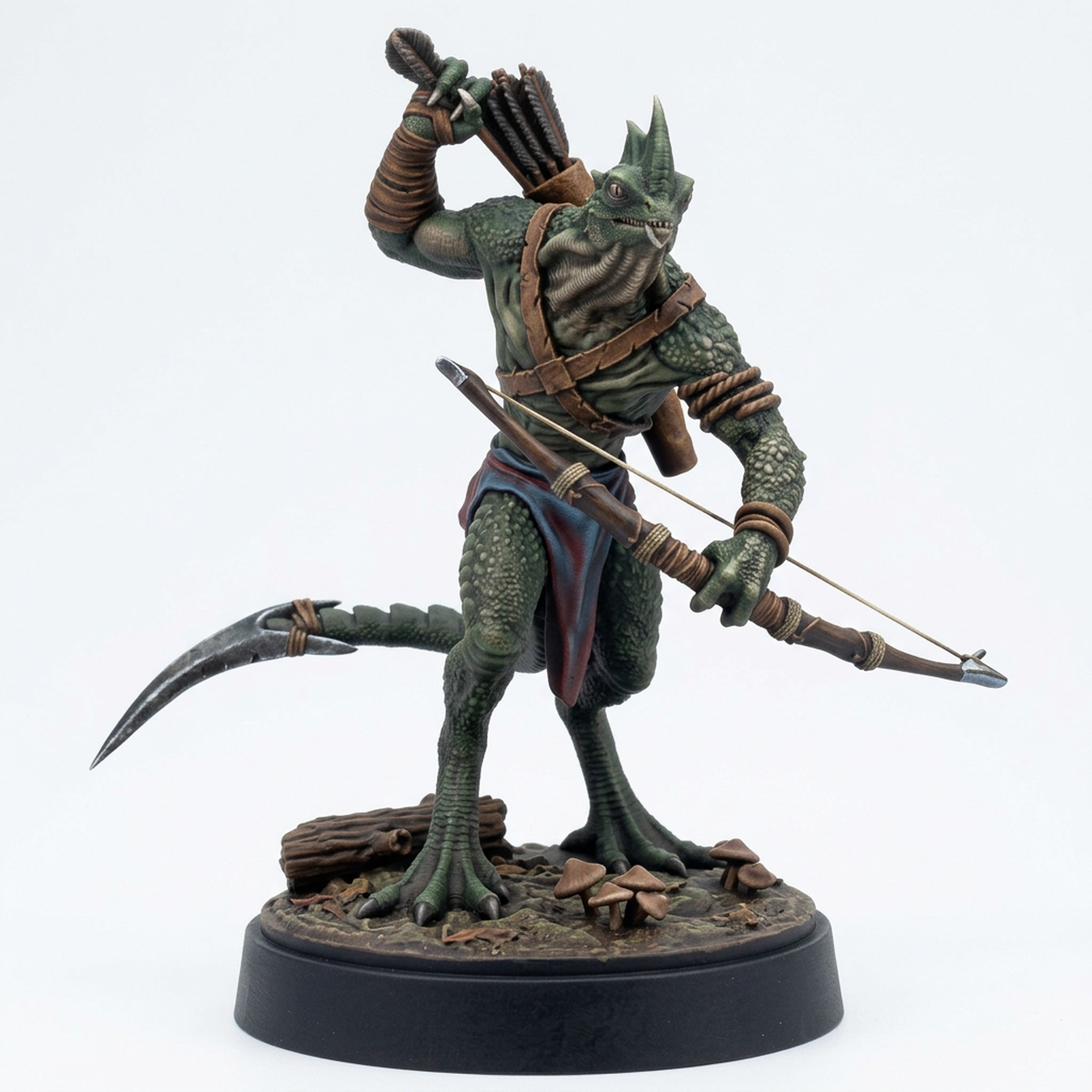 Perfect for use in Dungeons & Dragons, Pathfinder, or any fantasy wargame, this miniature brings the jungle hunter vibe to life. Whether as a swift PC or a cunning enemy, this scout will add tactical depth to your encounters. The base includes natural elements like a log and mushrooms, adding immediately to the immersion on your battlemap. Let your enemies fear the precise arrows from this reptilian master of stealth.