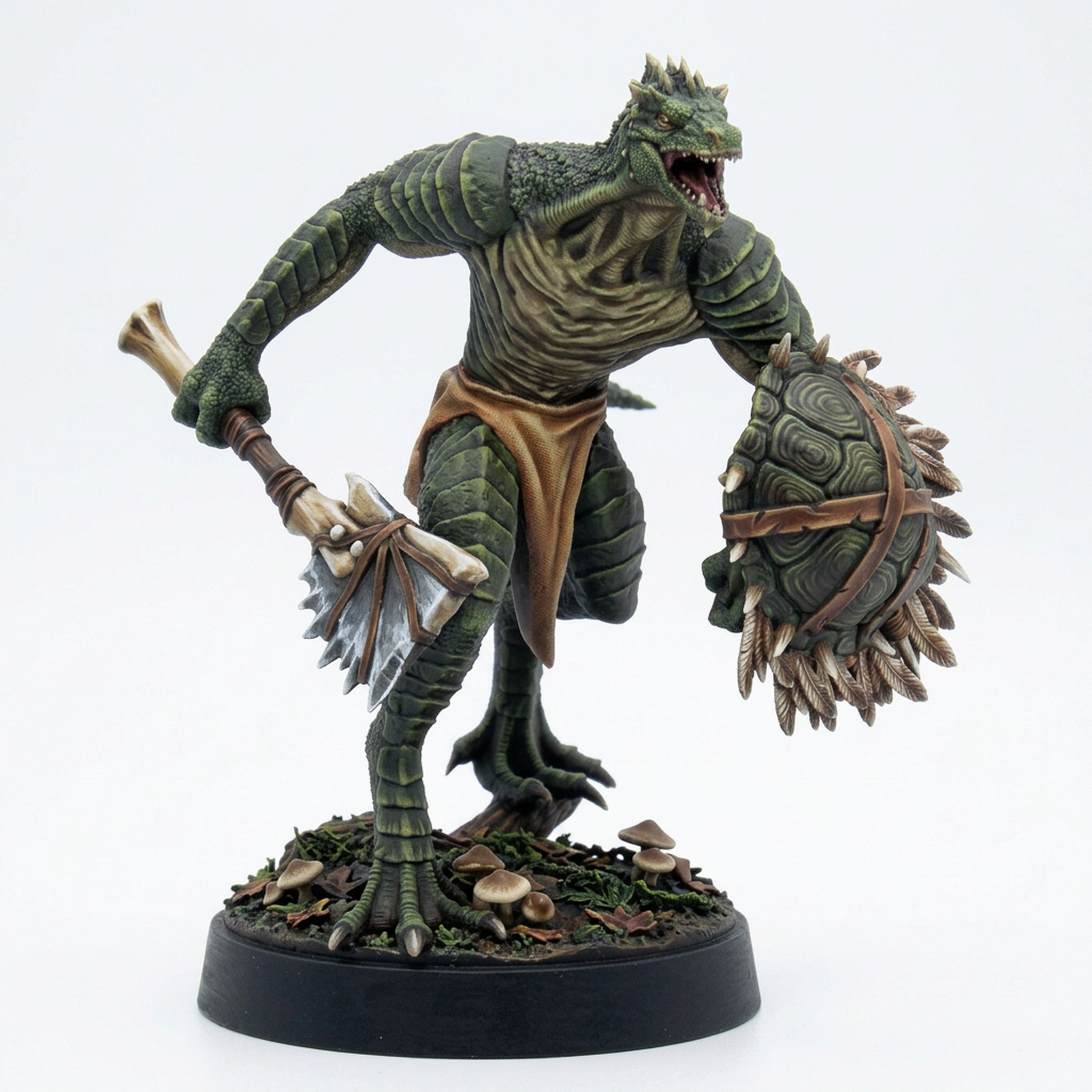 Unleash the primal fury of the Saurian Warrior 2 on your tabletop! This incredibly detailed 3D printed miniature from Mammoth Factory’s captivating Saurian Isles collection is a must-have for any fantasy wargamer or roleplayer. The dynamic pose and intricate details, from the scaled skin to the unique turtle shell shield and fearsome weapon, are perfectly rendered in high-quality resin.