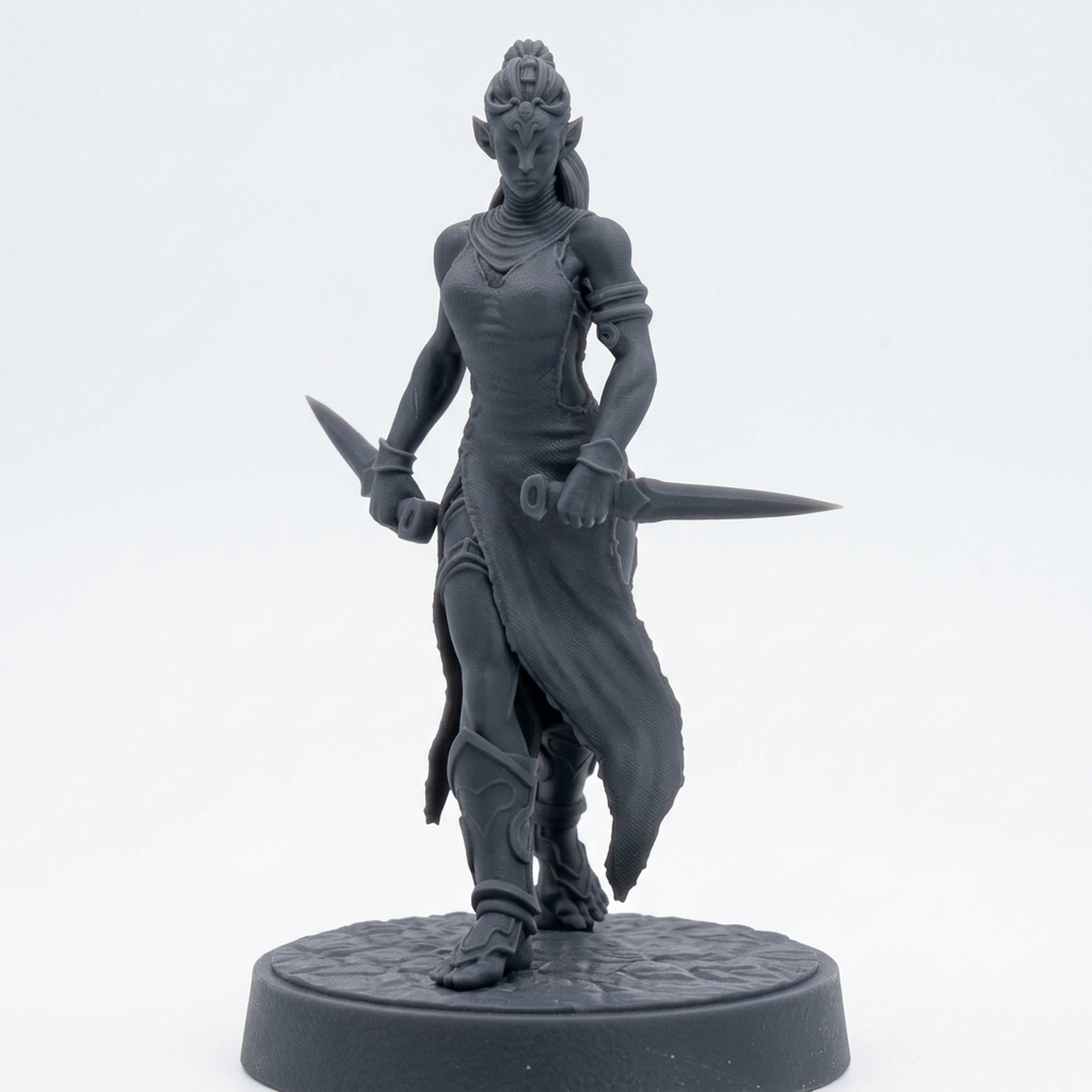 This miniature is a superb choice for a powerful Rogue, Assassin, or perhaps even a high-ranking cultist of a serpent god. Painters will love the challenge of bringing her unique skin textures and varied gear to life, while Dungeon Masters will appreciate having such a detailed, menacing figure to challenge their players. Whether lurking in a swamp, a ancient desert temple, or the sewers of a dark city, the Ssrall Hybrid is a monster they won’t forget. Printed in high-quality resin to capture every crisp detail.