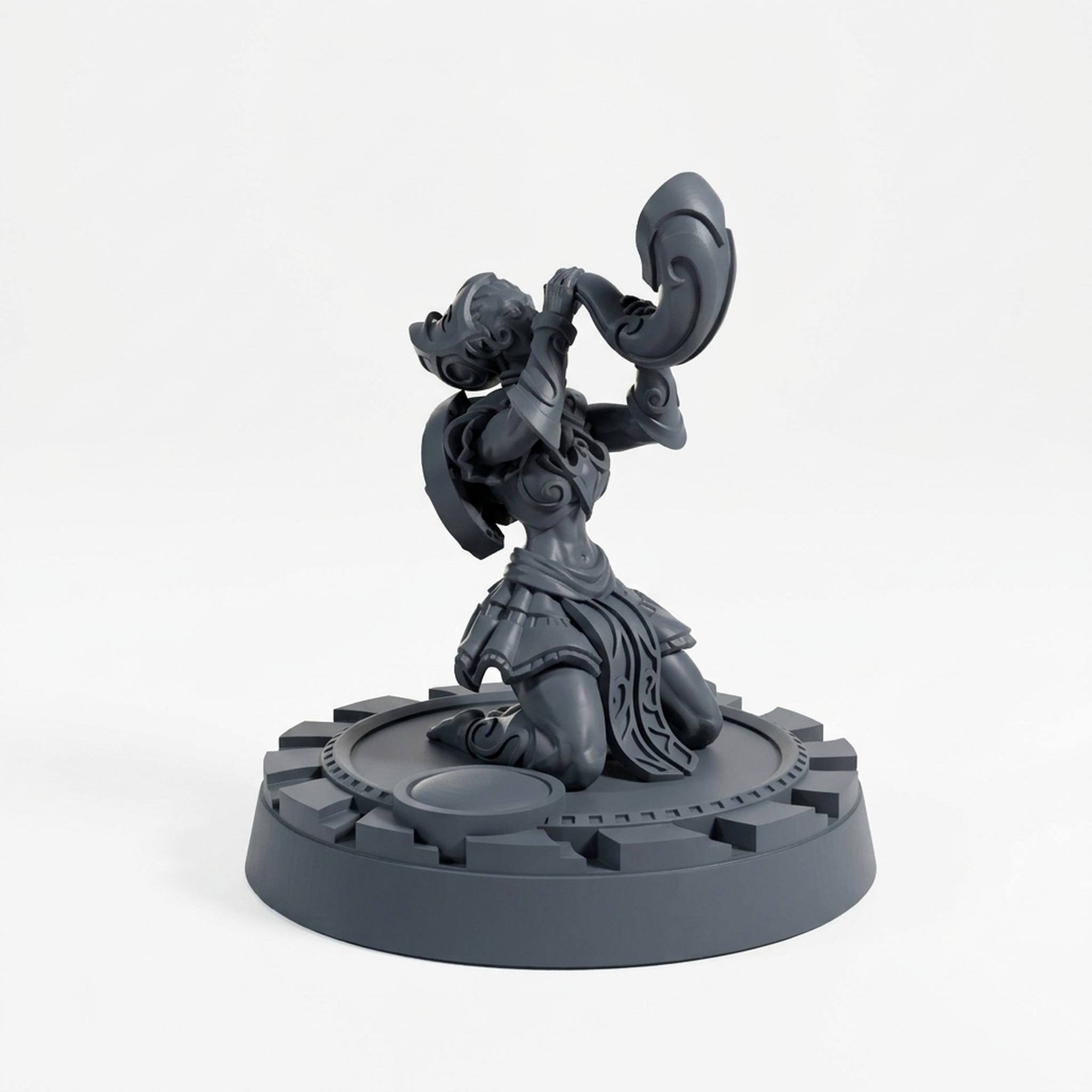 Introduce a powerful, thematic presence to your gaming table with the Stygian Siren A miniature from CastnPlay's captivating Aethernals collection. This stunning sculpt features a graceful female figure, depicted in a powerful, kneeling pose. She is focused intently on her massive warhorn, holding it high as if preparing to blast a signal or summon arcane forces. The attention to detail is remarkable, from the flow of her unique armor and skirt to the intricate, alien design of the horn and her elaborate headwear. Every surface is sculpted to capture texture and dynamic energy, making it a dream for hobby painters to bring to life with paints.