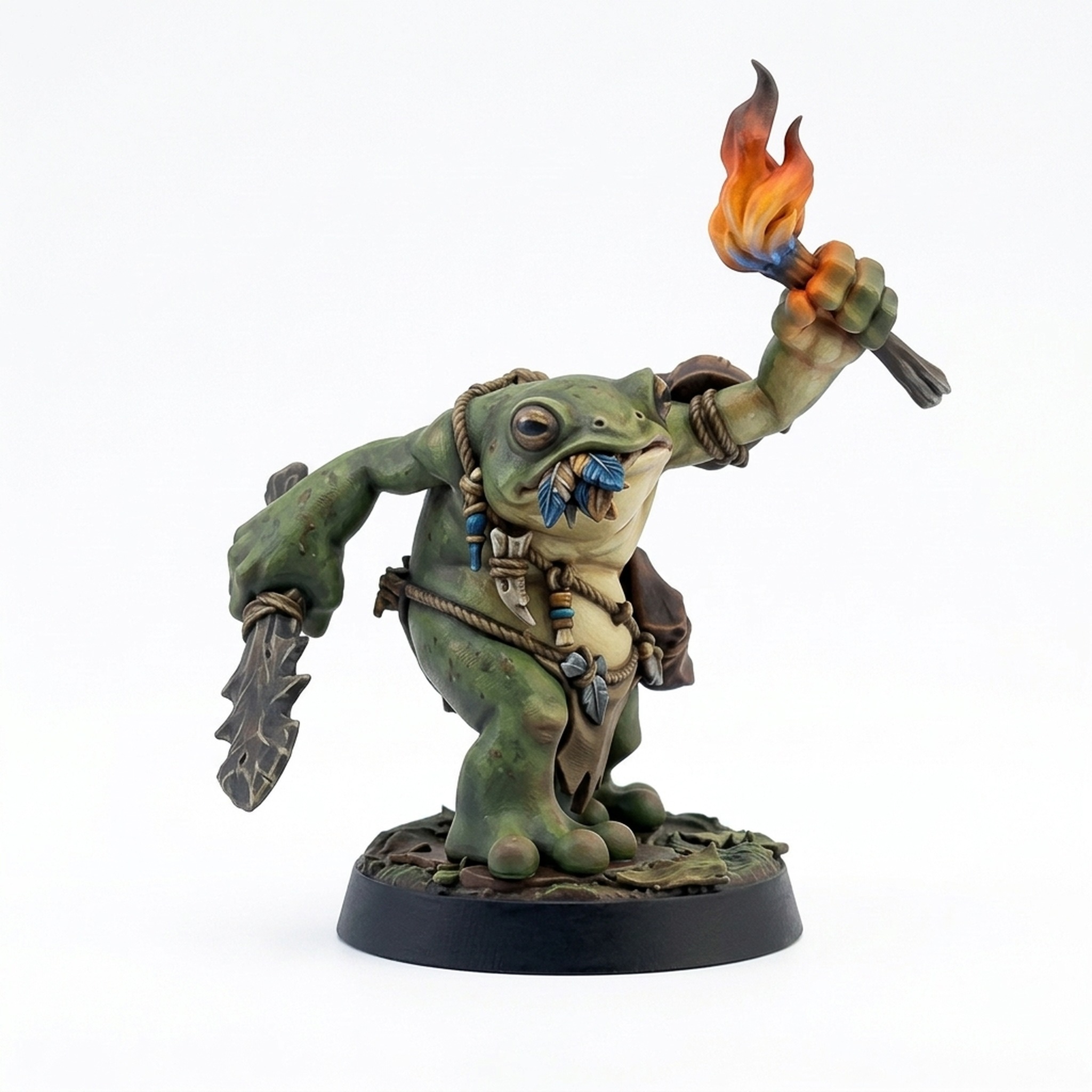 Introduce a unique and detailed character to your tabletop adventures with Toad Scout D from the Jungle Toads collection by CastnPlay. This miniature captures the essence of a diligent and well-equipped scout, ready for reconnaissance missions through treacherous jungle terrain. Sculpted with intricate detail, from its bulging eyes to the texture of its skin and the gear it carries, this model is a testament to the artist's skill. Whether leading a party through a murky swamp or keeping a watchful eye on a dangerous path, Toad Scout D adds depth and character to any fantasy setting.