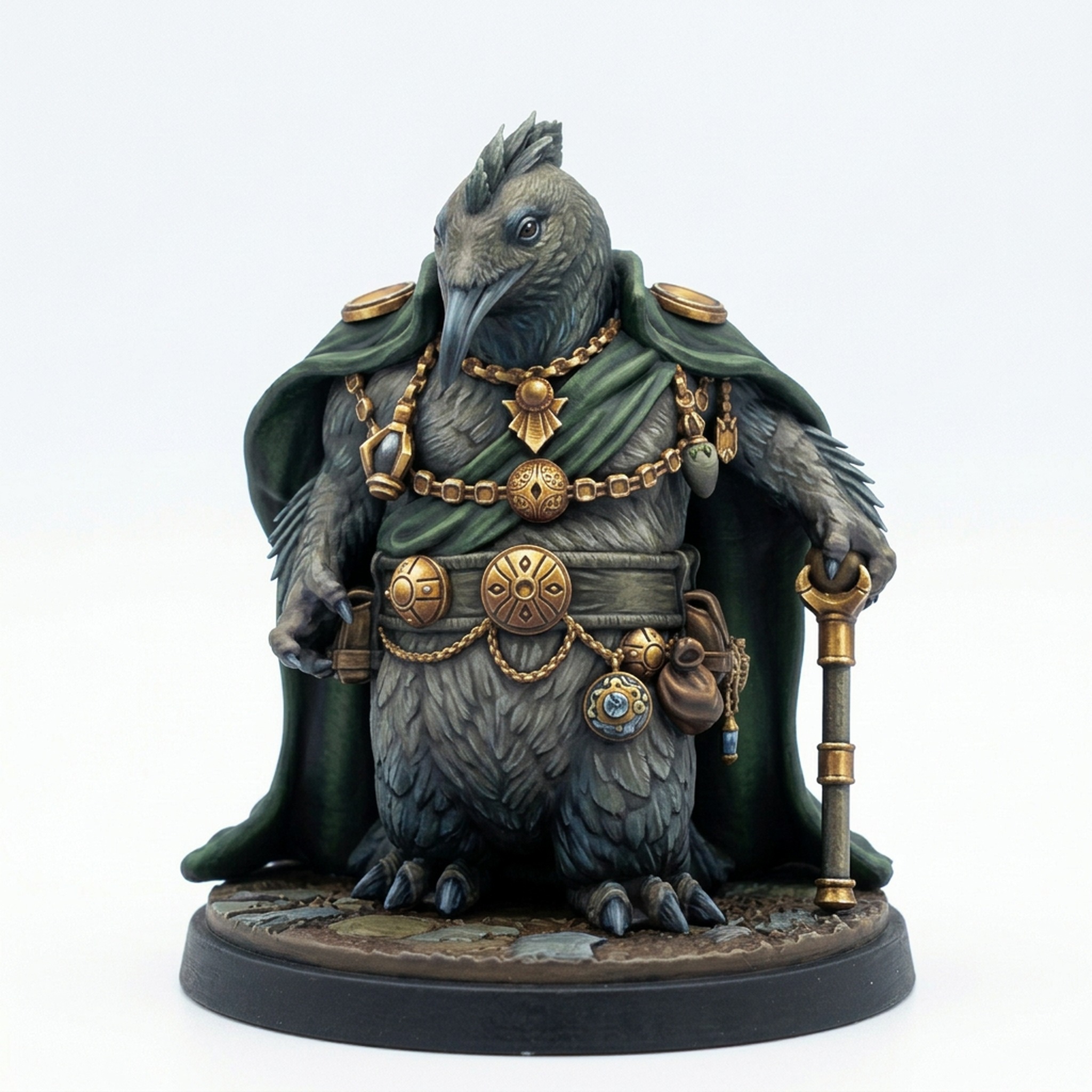 Designed by the talented team at Mammoth Factory, Tyran Plesoplius VII is rich with fine details. From the textures of his feathered body to the intricate carvings on his heavy metal belts, multiple pouches, and the ornate staff he grips, every element is designed to stand out on the battlefield or your display shelf. This model is perfect for use as a formidable boss, a unique NPC, or even a player character in a fantastical, cold-themed campaign. Bring this unique character to life and make him the center of your next narrative arc.