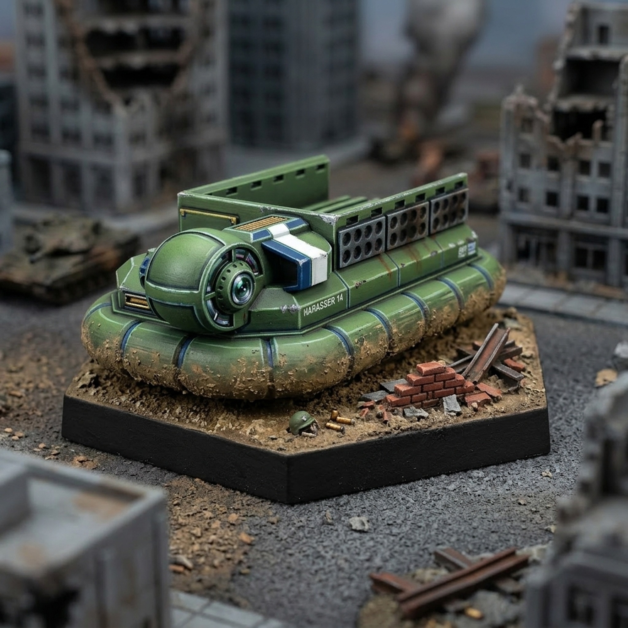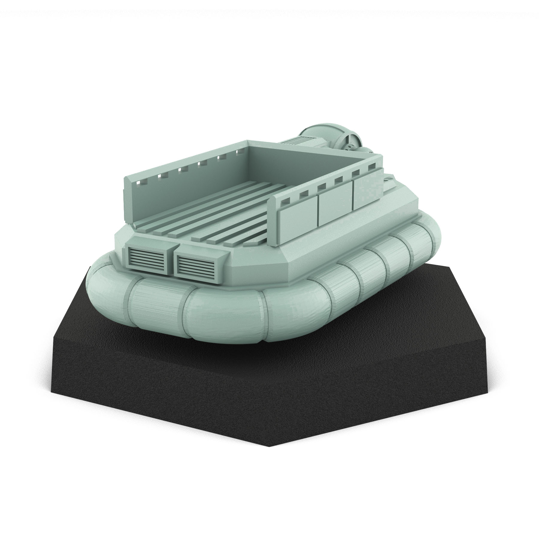 Introduce strategic logistics to your sci-fi miniature games with the Heavy Hover Truck Cargo from USe Mechs. This detailed 3D printed miniature represents a robust transport vehicle, featuring a large cargo bed and visible hovercraft propulsion pads. Perfect for objective-based scenarios or as dynamic terrain, it's a vital addition to any futuristic military force or logistics train. The open-topped rear allows for easy customization, letting you add your own supplies, cargo containers, or even a scratch-built weapon mount.