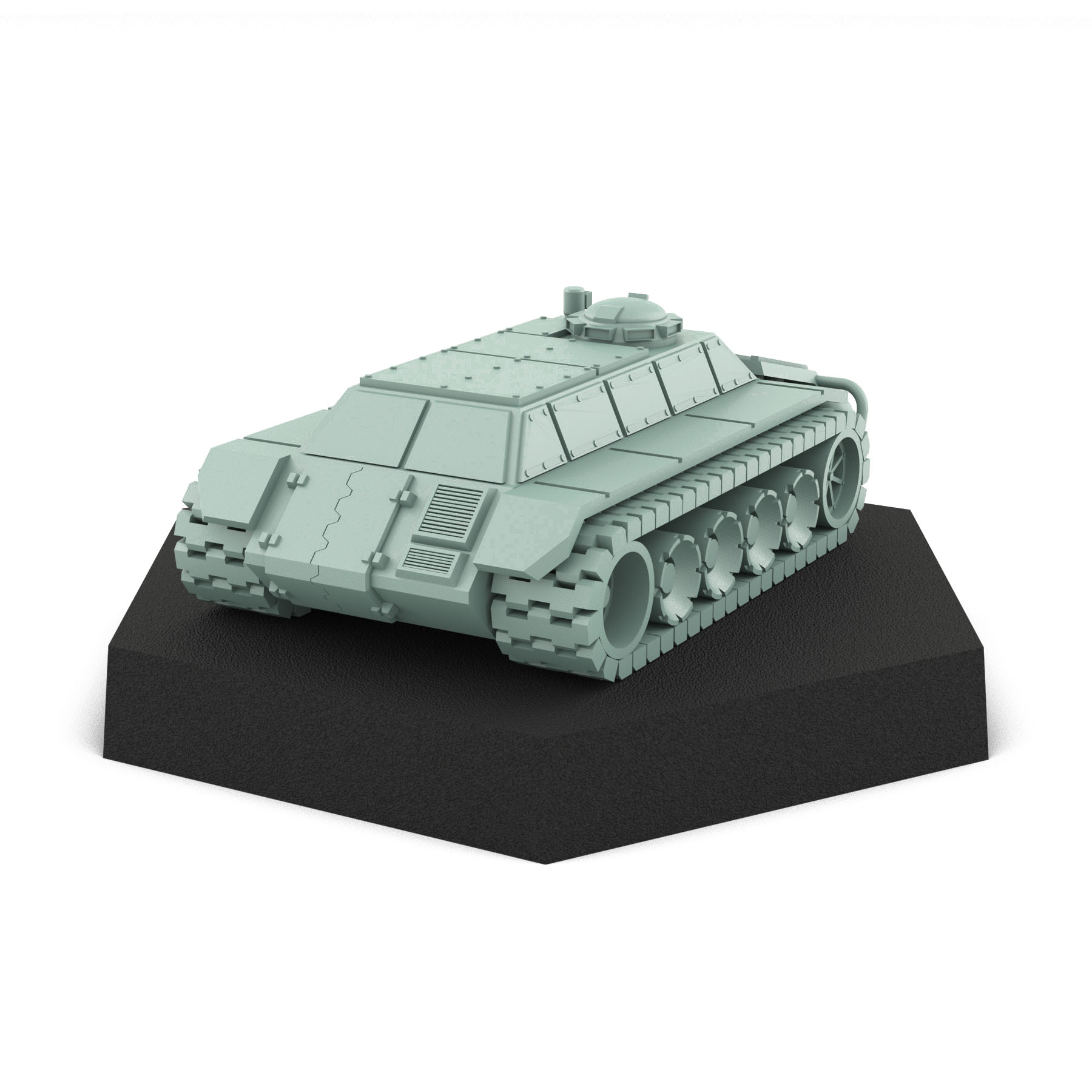 Deploy your troops safely with the rugged HK17 Armored Personnel Carrier. Designed by USe Mechs, this tracked vehicle miniature is built to deliver infantry to the front lines under fire. It features intricate track details, a top cupola with visibility ports, and a forward-mounted plow for smashing through obstacles. The panel lines and bolt details are crisp, ensuring it looks fantastic whether you paint it or leave it raw. It’s an ideal addition to any armored column in your favourite sci-fi universe.