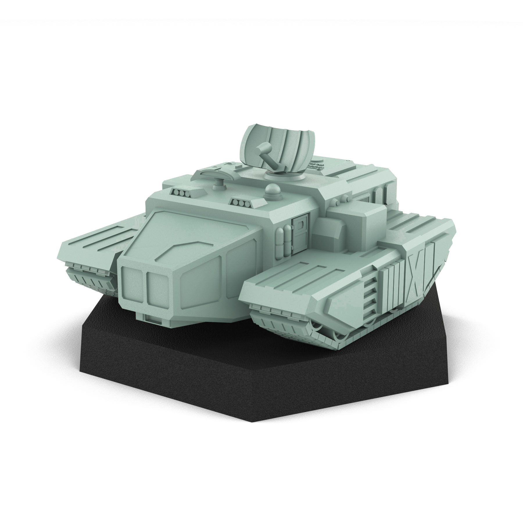 We offer this miniature in standard sci-fi wargaming scales, ensuring seamless integration into your existing armies and terrains. Our high-resolution 3D printing process captures every architectural detail, panel line, and rivet, giving painters an excellent canvas and players a sturdy, high-quality game piece. Add crucial command and control capability to your next list with this versatile sci-fi vehicle miniature.
