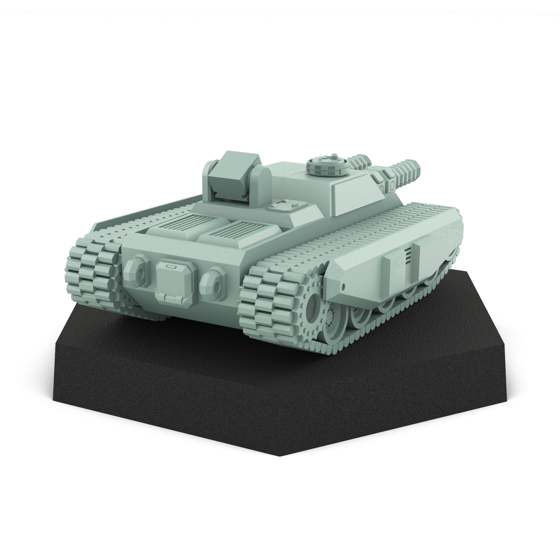 Designed by USe Mechs, this miniature is 3D printed in high-quality resin to capture every line and texture of the digital model. The tracked suspension system is clearly defined, and the armor plating looks rugged and battle-ready. It sits perfectly on a hexagonal base (which may be available for purchase separately or included, depending on options selected).